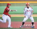 조선닷컴 : 전체기사: [포토] 안치홍 추격에 장성호 "얼음"