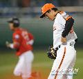 29일 대전에서 열린 '2011 롯데카드 프로야구' SK와 한화의 경기. 8회초 2사 1루 SK 안치용에게 좌중월 투런포를 허용한 한화 김혁민이 허탈해하고 있다.대전=정재근 기자 cjg@sportschosun.com
