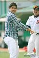 [포토] 양준혁, 정재훈 배트 뺏었다가 '핀잔'